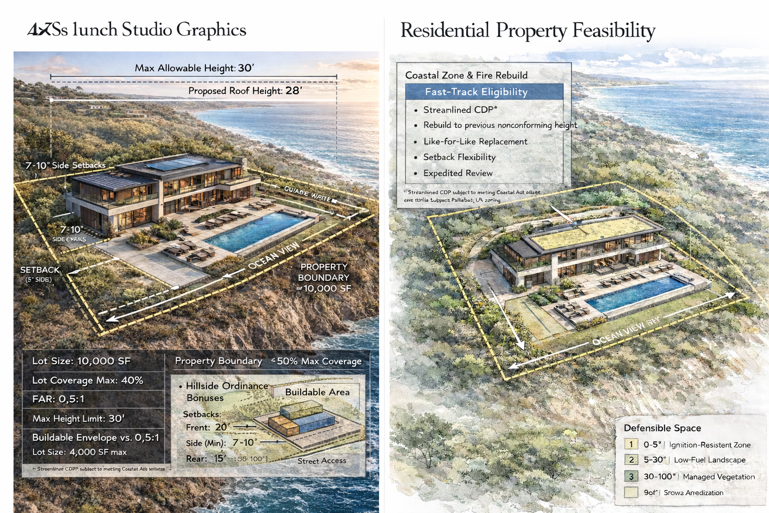 To our Pacific Palisades neighbors who are beginning the rebuild process – our hearts are with you. I know that rebuilding after losing a home is an incredibly daunting experience. It can be overwhelming and frustrating. Between insurance questions, city requirements, design decisions and construction costs, it can feel like you’re being asked to make huge financial decisions without clear answers. However, the one thing we know can help families during this process is starting with a feasibility report before buying or selling a fire rebuild property, hiring an architect or submitting plans. It’s important to remember that you might actually have more flexibility when rebuilding as zones can change.